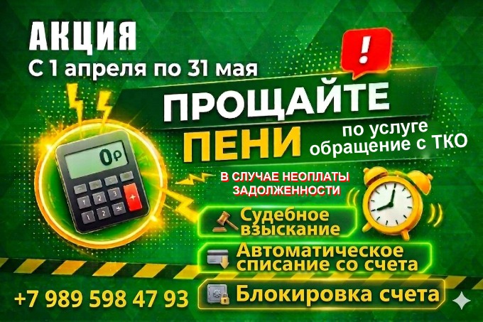 В рамках акции, лица, имеющие задолженность, смогут погасить долг без начисления пеней. Срок действия акции с 1 апреля по 31 мая 2026 года. Чтобы оплатить задолженность, перейдите по ссылке на официальном сайте МСК-НТ https://mskobl.msk-nt.ru/oplata-dlja-mkd-po-qr-kodu/ , наведите камеру телефона на QR код. В открывшейся странице введите номер лицевого счета. Также вы можете оплатить услугу через Сбербанк по ссылке https://mskobl.msk-nt.ru/oplatit-tko-sberbank/ .