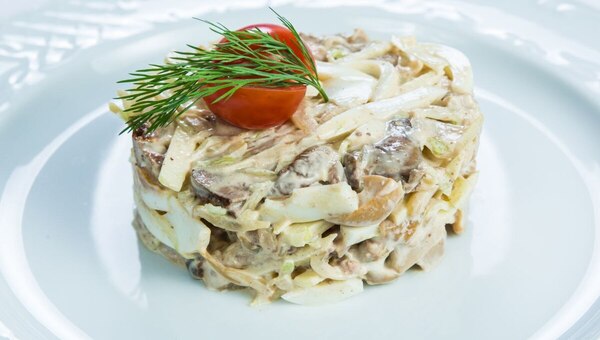 Сто граммов такого салата содержат около 10 грамм белка, что делает его очень питательным и полезным.