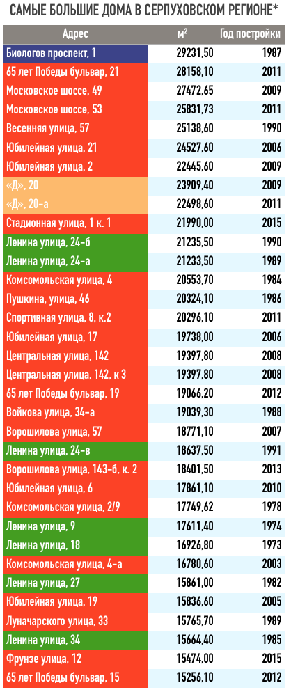 Журналисты портала «OKA.FM» провели небольшое исследование, с целью выяснить, какой дом в Серпуховском регионе самый большой (по площади). Мы изучили более полутора тысячей записей и составили рейтинг из 35 крупнейших жилых домов Серпуховского района, городов Серпухов, Протвино и Пущино.