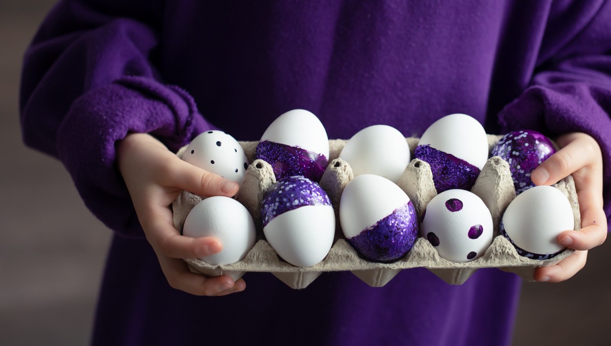 Каждая хозяйка в светлый праздник Пасхи старается порадовать близких и добавить уюта в дом. И что может быть лучше, чем необычные пасхальные яйца, которые не только вкусные, но и выглядят по-настоящему эффектно. Так, есть простой способ добиться глубокого чёрно-фиолетового цвета с лёгким мерцанием и без сложных красителей. Всё, что понадобится — обычные белые яйца и бутылка красного вина (сладкого или полусладкого).