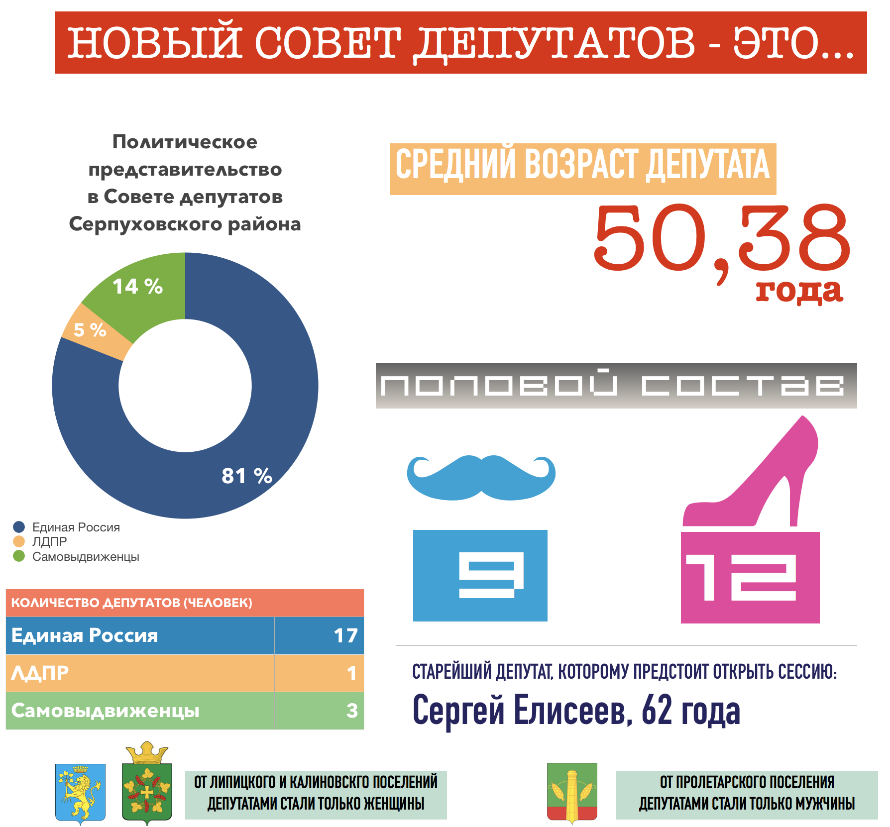 К концу вторника, 19 сентября, стали известны имена всех депутатов, которые войдут в состав Совета Серпуховского района. Львиную долю мандатов получили, разумеется, единороссы. При этом, стоит напомнить, что на выборах 9 сентября представители этой партии показали в районе, пожалуй, самые низкие результаты за всю историю. И новый глава еле-еле осилил планку в 40% и депутатских мест во вновь избранных Советах (Липицкое и Данковское) им удалось набрать менее половины. Но политические технологии таковы, что позволяют Совету муниципалитета заполнить представителями партии, растерявшей поддержку большинства.