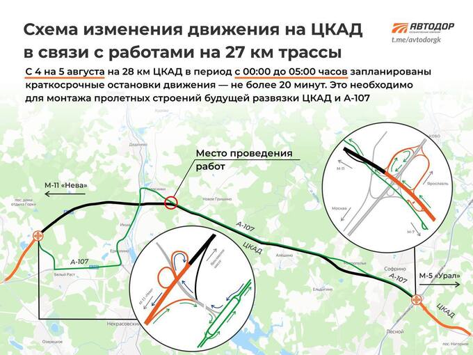 Как сообщил «Автодор», основные работы пройдут в ночь на 5 августа, с полуночи до 5 утра.